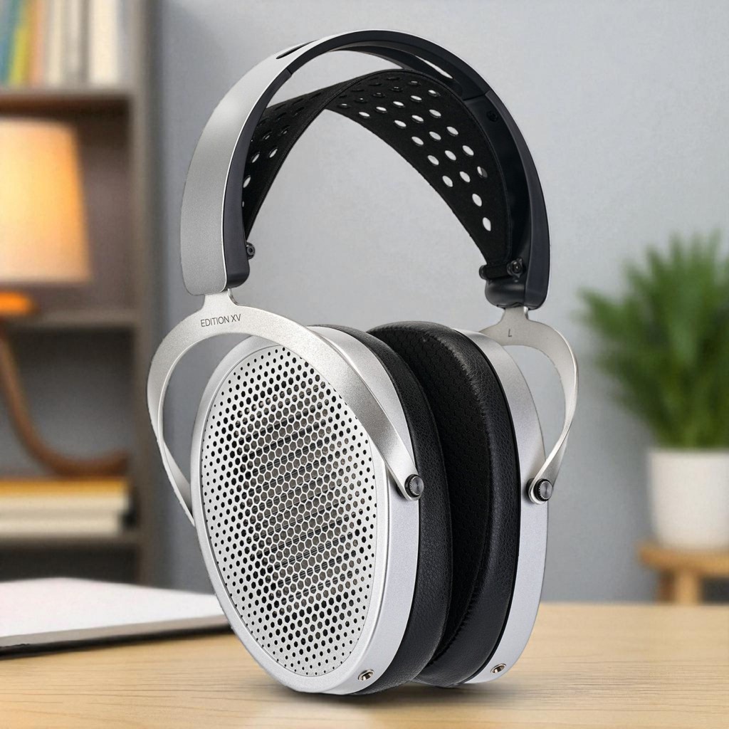 The Edition XV builds on the success of the Edition X, Edition X V2, and Edition XS. Unlike the HE600, it features an oval, egg-shaped design, but shares the same new second generation ergonomic headband with a suspension strap, similar protective grills, angled 3.5 mm connectors, and Focus-type hybrid pads. It also incorporates the new web-enhanced magnets and the Neo Supernano Diaphragm Gen. 2. With an impedance of 12 ohms, amplifier matching could be interesting, though its sensitivity is a more typical 92 dB.