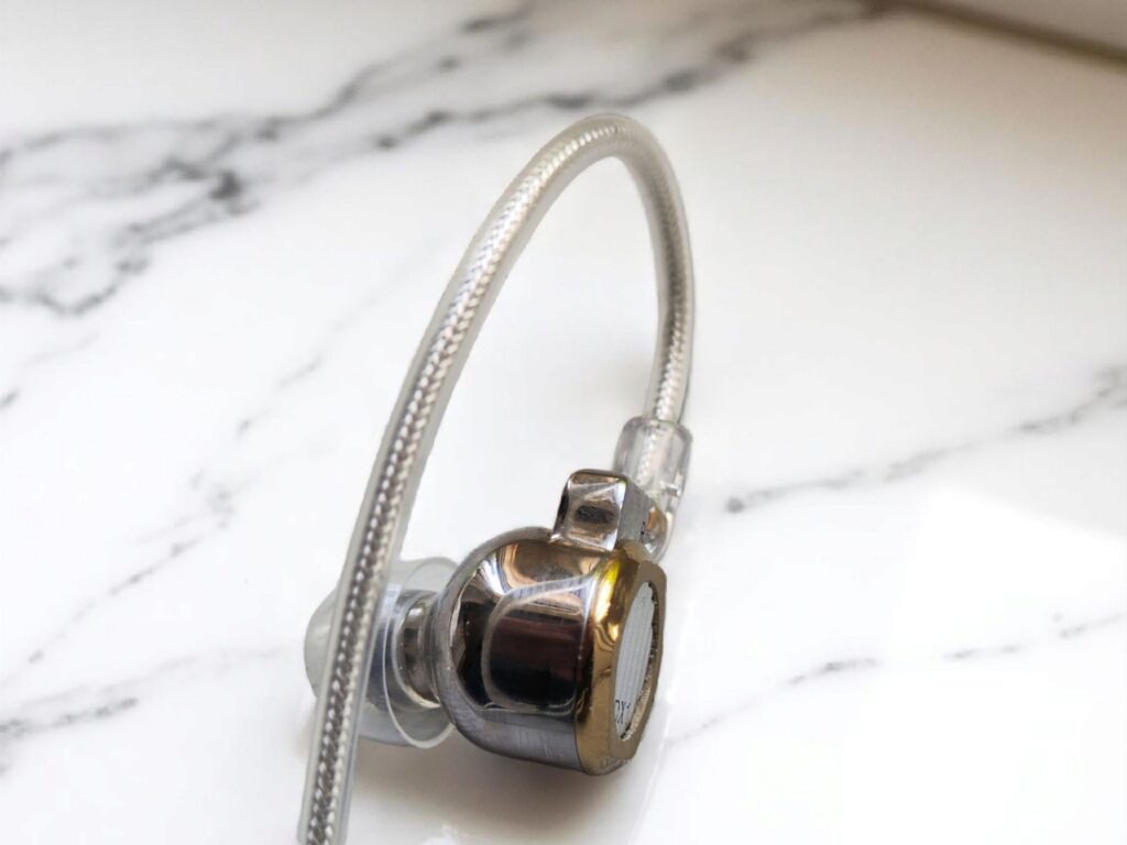 The Letshuoer DX1 features CNC-machined stainless steel housings, electroplated for a shiny finish. Its design draws inspiration from a nut-and-bolt aesthetic, while the interior is ergonomically shaped for comfort. The IEMs are compact due to the single dynamic driver configuration.
