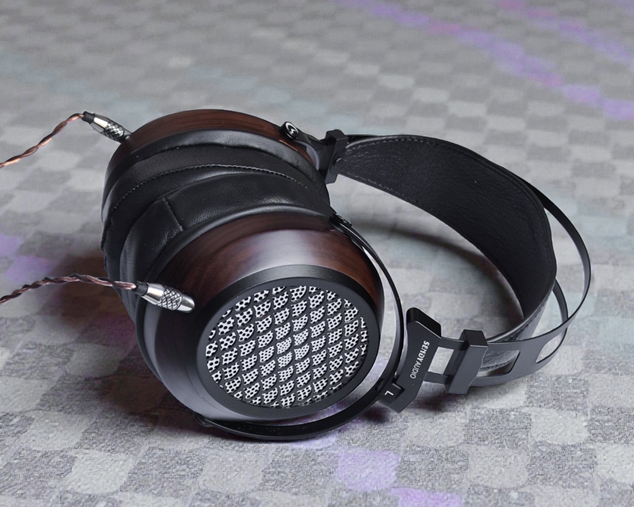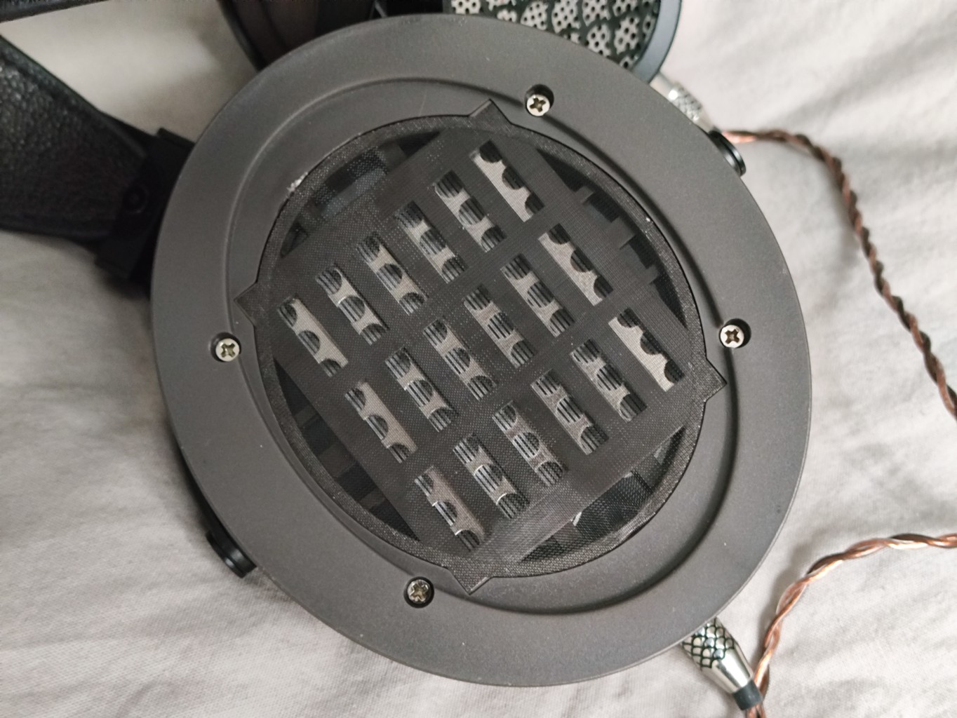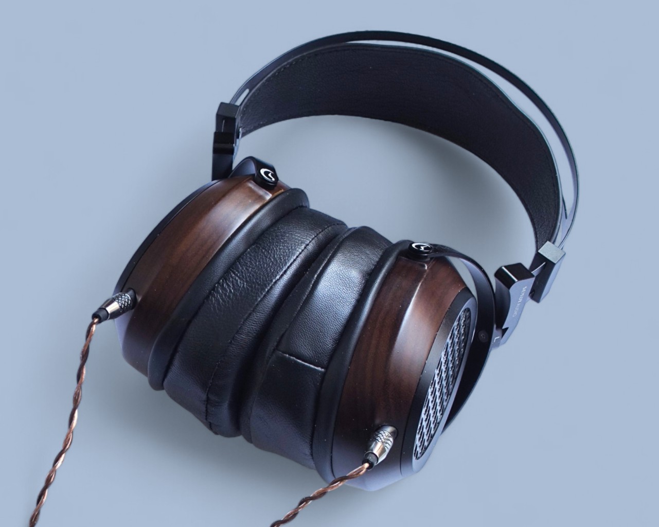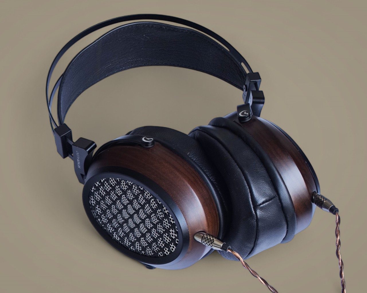 The ear cups are made of zebrawood and carved using CNC technology. There is a silver mesh on the outside of the driver and a decorative black pattern grid. The drivers are in other words very well protected, unlike on Hifiman’s unveiled series…